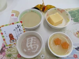 今日は元日ということで、おせち料理やお餅つきでお正月を楽しんでいただきました(^^♪