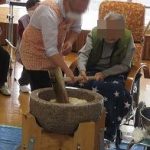 お腹が満たされたら、午後からは利用者様と一緒にお餅つきを行いました。