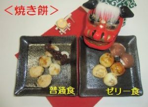 出来た餅は丸めて焼き、砂糖醤油・きな粉・あんこの3種類の味で召し上がっていただきます。