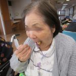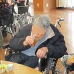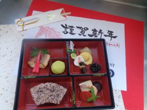 さて、元旦に施設長から新年の挨拶をさせて頂き、昼から食前酒としてノンアルコールビールと甘酒を嗜みながらおせち料理を堪能して頂き、午後より再びお神酒を嗜みながら焼き餅を召し上がって頂きました。